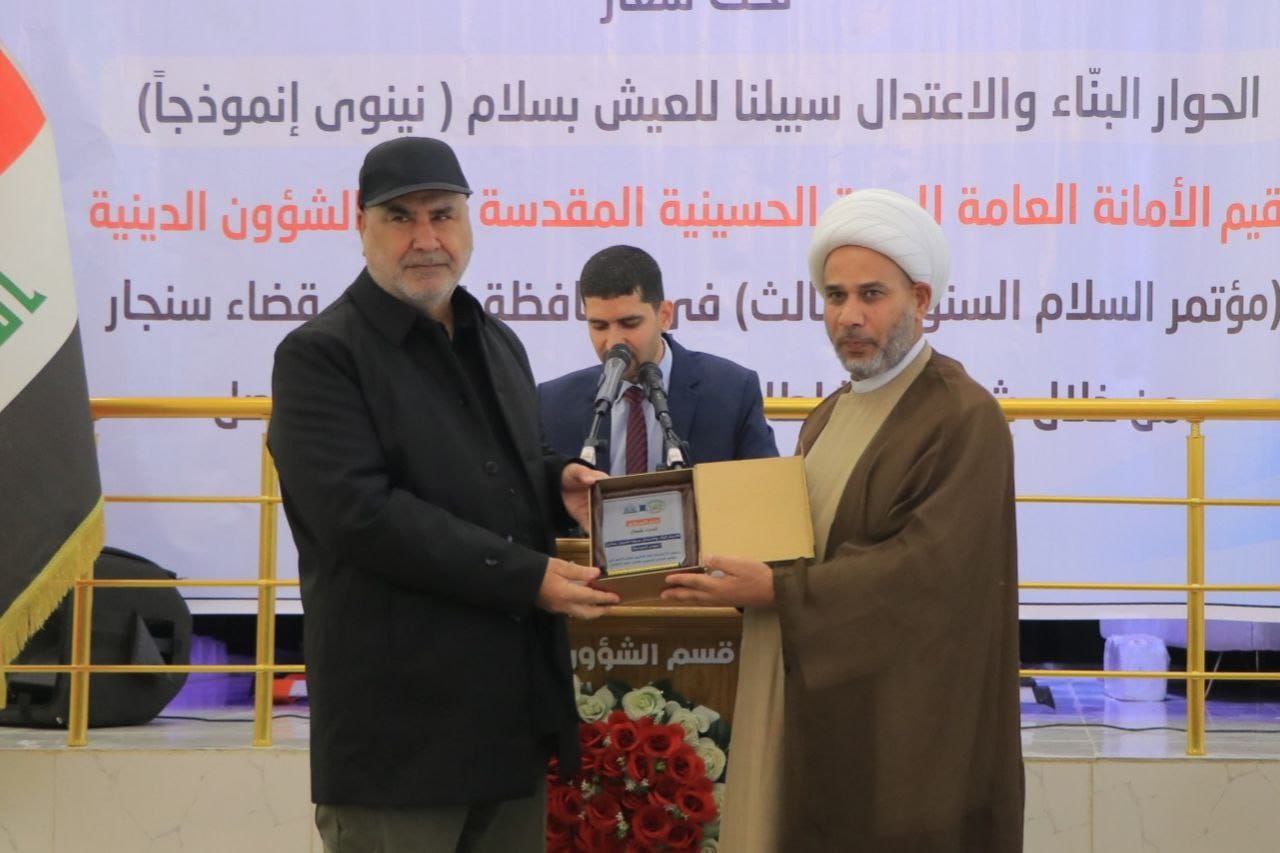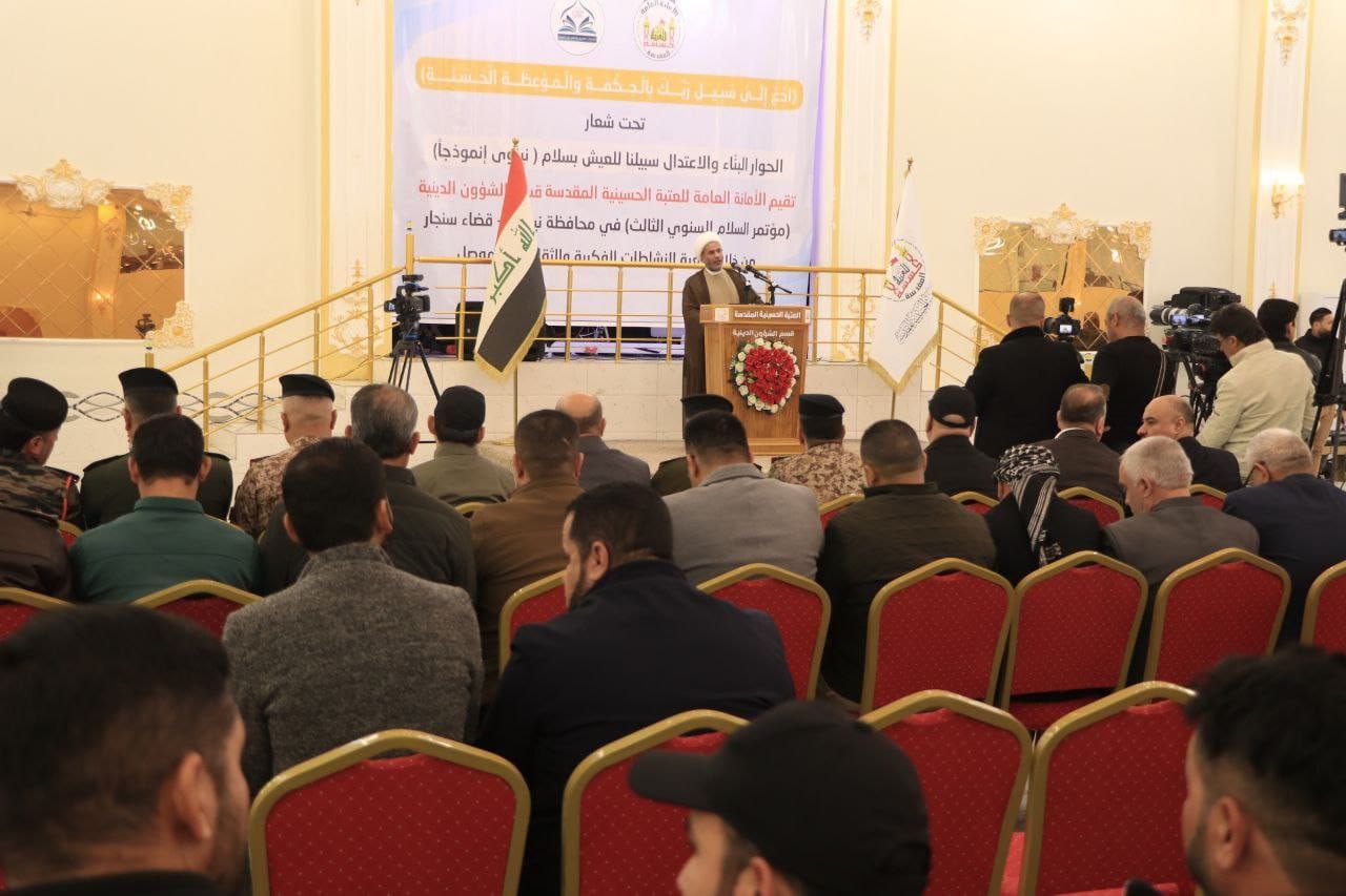 برعاية الأمانة العامة للعتبة الحسينية المقدسة وبمشاركة جماهيرية واسعة أقيم مؤتمر السلام السنوي الثالث في قضاء سنجار بمحافظة نينوى الذي نظمته شعبة النشاطات الفكرية والثقافية في الموصل، وحمل شعار (الحوار البناء والاعتدال سبيلنا للعيش بسلام نينوى انموذجا) وقد انعقد المؤتمر يوم السبت الموافق 13 / 12/ 2025 بهدف تعزيز السلم الأهلي ودعم الاستقرار المجتمعي في المحافظة.