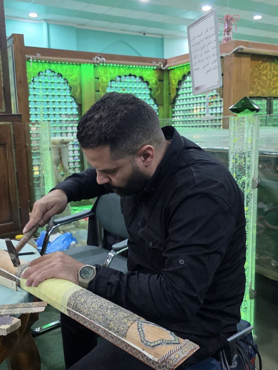 انہوں نے مزید کہا کہ منبر کو خاتم کے طریقے سے ڈھانپا جاتا ہے، اور یہی طریقہ حرمِ امام حسینؑ اور دیگر عتباتِ عالیات میں لکڑی پر نقش و نگار کے لیے بھی استعمال ہوتا ہے۔ اس فن کو ’’فنِ خاتم‘‘ کہا جاتا ہے