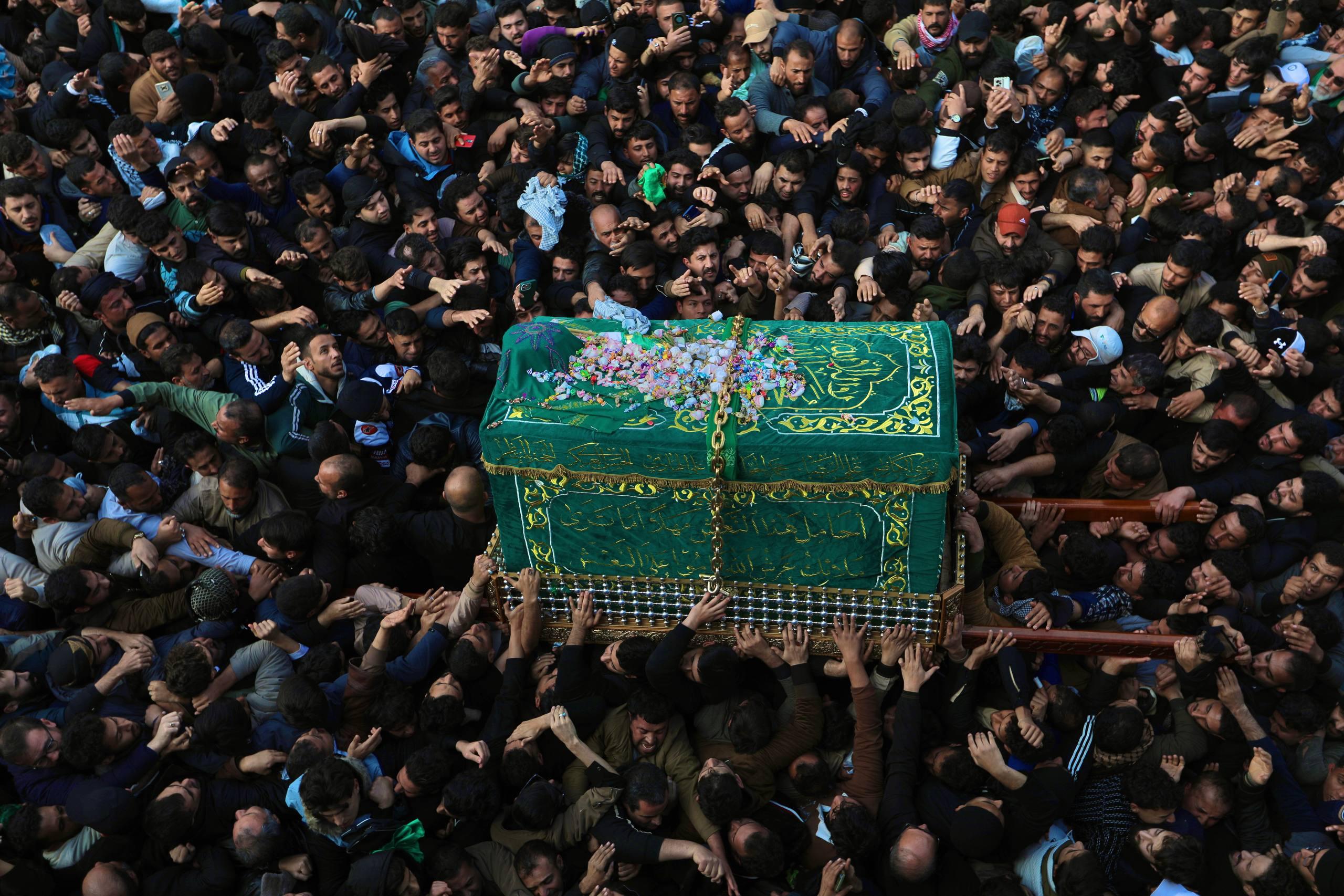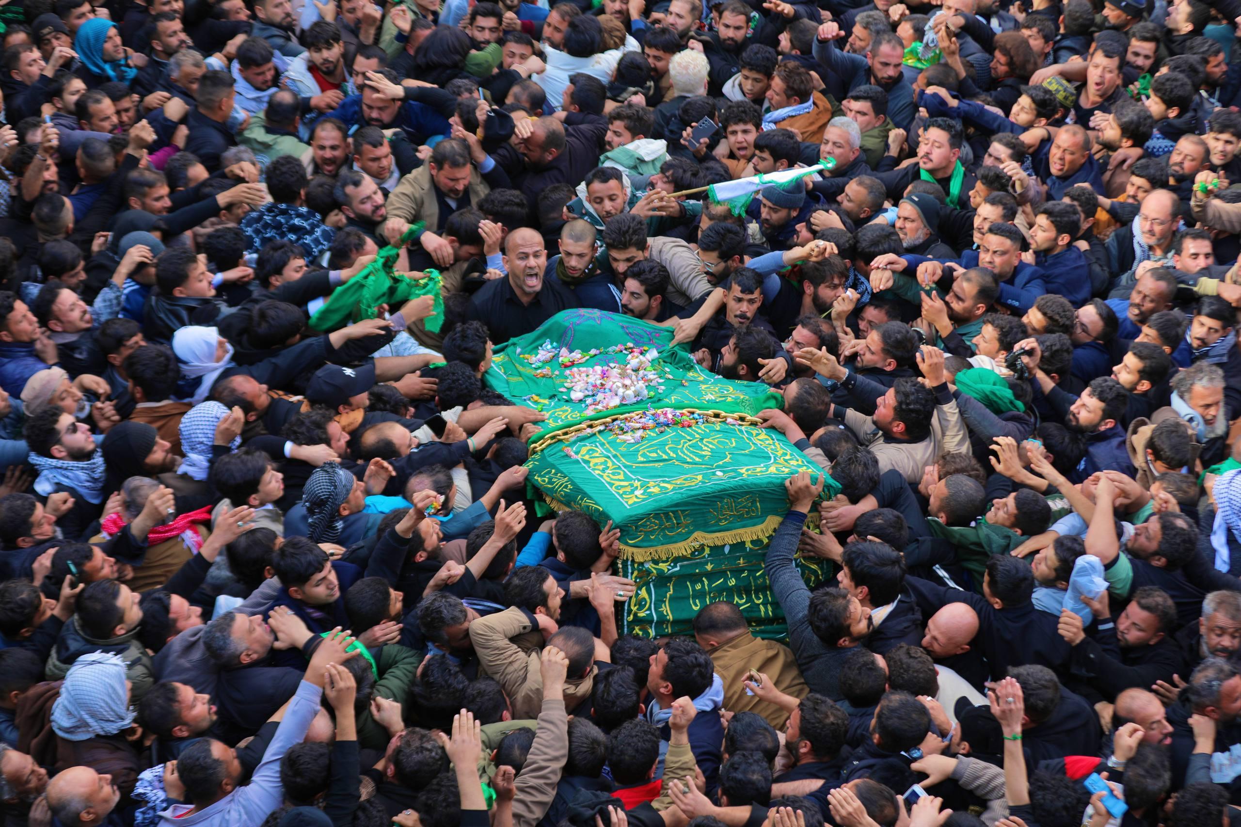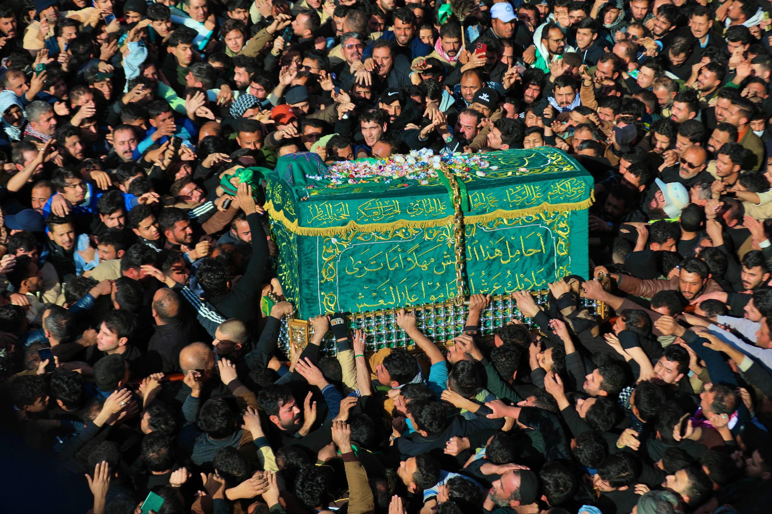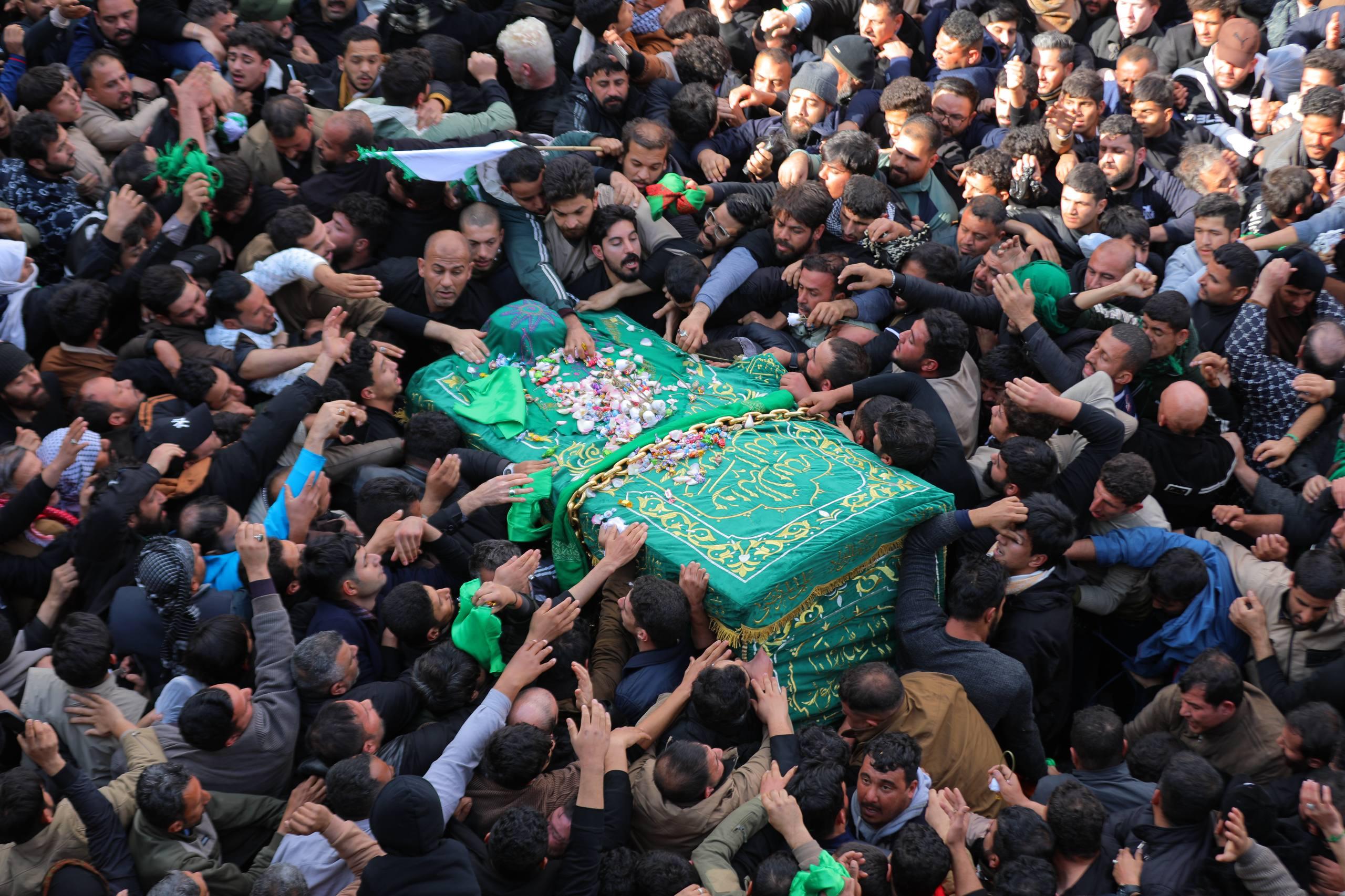 حشود المؤمنين تُحيي مراسيم حمل نعش الإمام موسى بن جعفر (عليه السلام) في الكاظمية المقدسة