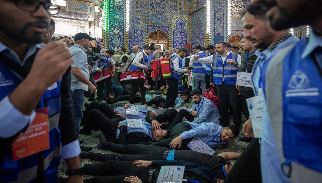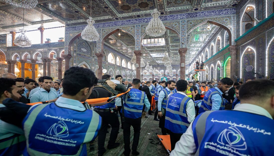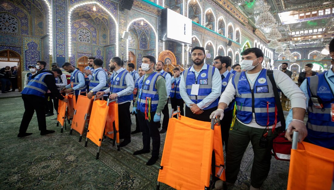 İmam Hüseyin (a.s) Türbesi’nin bünyesinde hizmet veren Sağlık Kurulu personeli, ziyaretçilerin güvenliği için Tuveyric koşusunun tatbikatını yaptı.