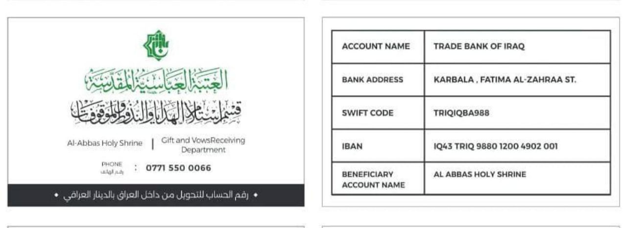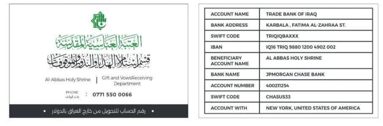 BENEFICIARY ACCOUNT NAME: AL ABBAS HOLY SHRINE