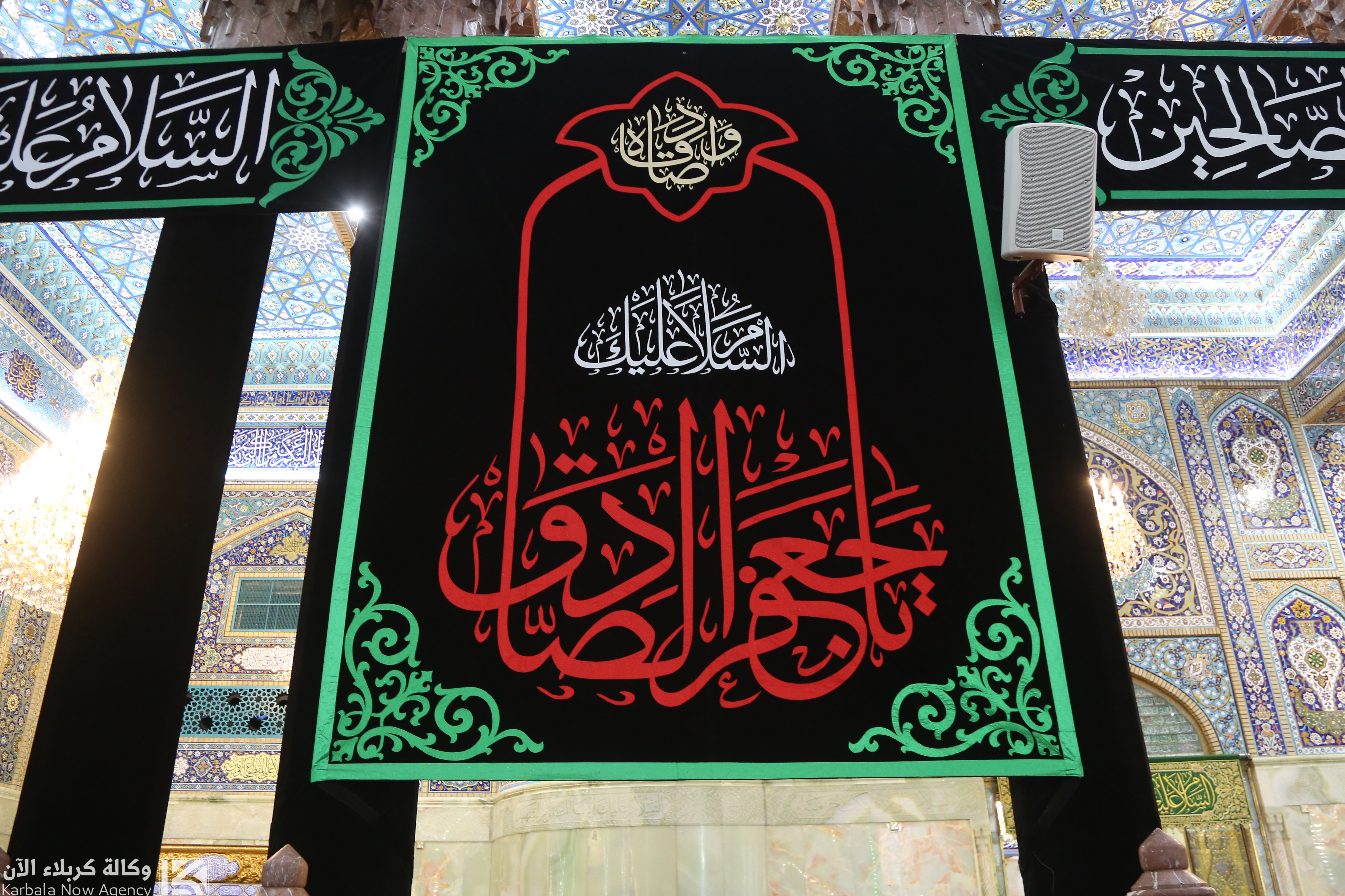 Black banners mark Imam Al-Sadiq’s martyrdom at Imam Hussain Holy Shrine