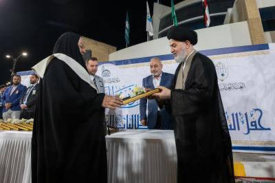 ممثل المرجعية يكرّم عددا من عوائل الشهداء في ختام حفل تخرج بنات الكفيل التاسع