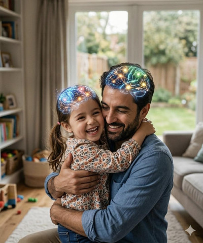 تشير أبحاث علم الأعصاب إلى أن دماغ الطفلة يتفاعل بشكل إيجابي وعميق عند تلقيها عناقاً من والدها، إذ تنشط مناطق مرتبطة بالشعور بالأمان، وبناء الثقة، وتن...