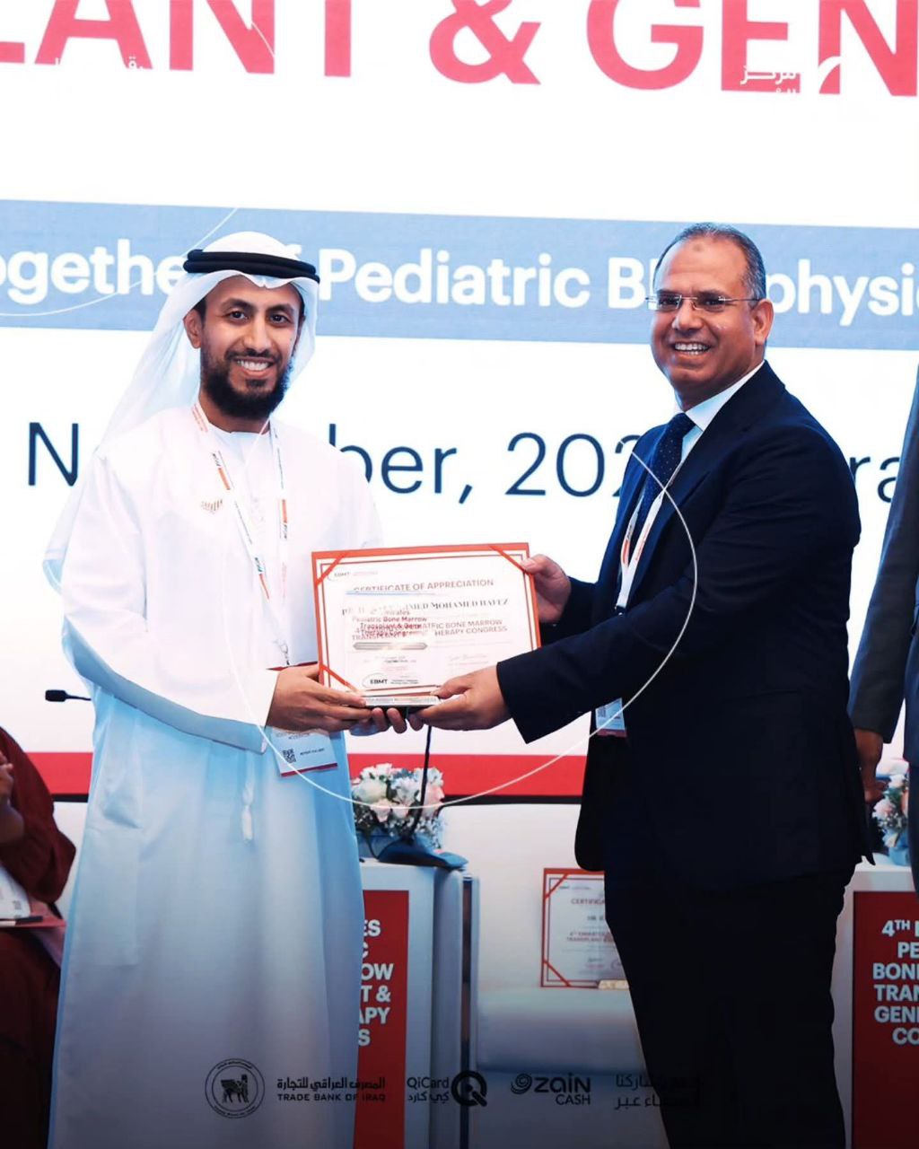The Al-Mujtaba Center for Bone Marrow Transplantation and Hematology, part of the Health and Medical Education Authority at the Imam Hussain Holy Shrine, presented a scientific paper at the Fourth Emirates Pediatric Bone Marrow Transplant and Gene Therapy Congress, held in Abu Dhabi, United Arab Emirates.