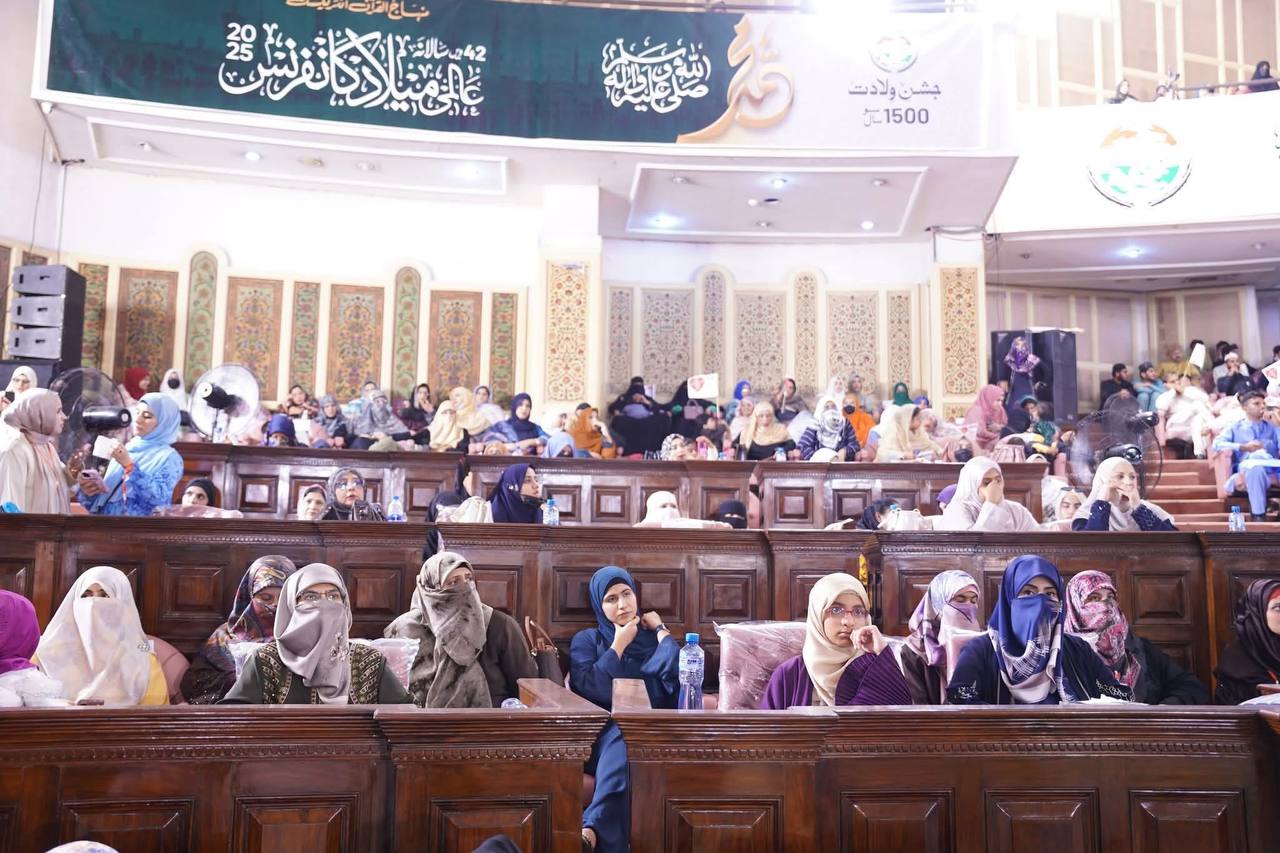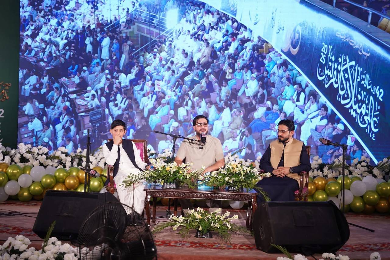 Un large rassemblement de savants et de cheikhs venus du Pakistan et de l’étranger y a pris part, aux côtés de célèbres récitants internationaux du Coran, de chantres de panégyriques prophétiques, de penseurs, ainsi que de milliers d’amoureux et de passionnés du noble Prophète (pslf).