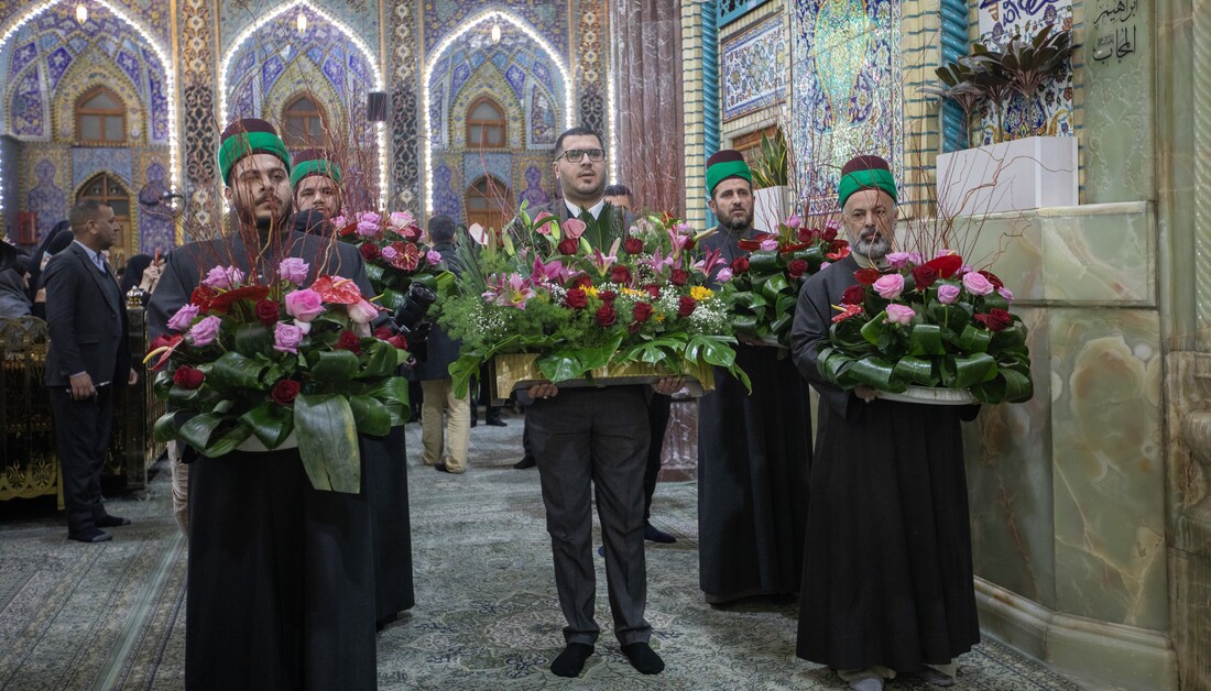 En images… Des couronnes de fleurs ornent le sanctuaire de l’Imam Hussein (as), en célébration de l’anniversaire de la naissance de l’Imam Ali (as)