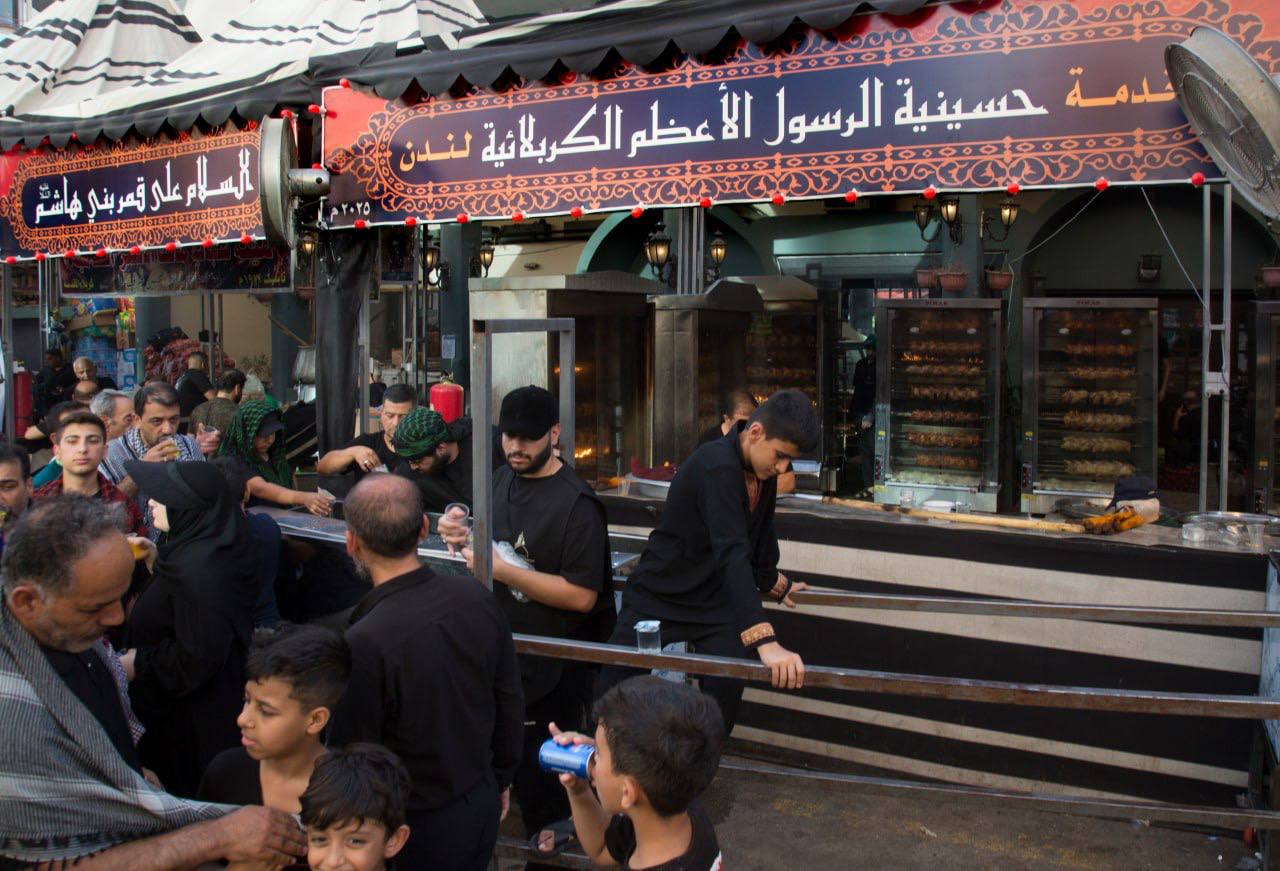 Ziyaretçilerin yürüyüş yaptığı Erbain yolu boyunca Hüseynî bayraklarla süslenmiş çadırlar kuruluyor ve farklı dillerde mersiyeler ve ilahiler okunuyor. Türkçe, Farsça, Urduca, İngilizce, Almanca ve Çince dillerinde yankılanan sesler, farklı dil ve aidiyetlere rağmen kalpleri birleştiren benzersiz bir insanlık tablosu oluşturuyor.