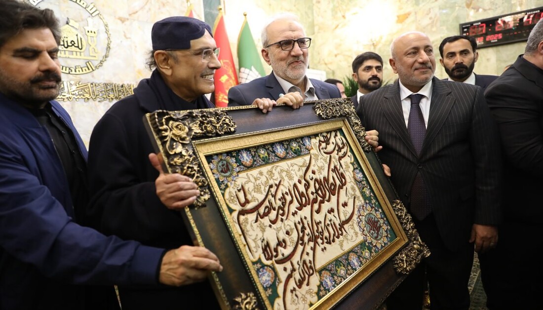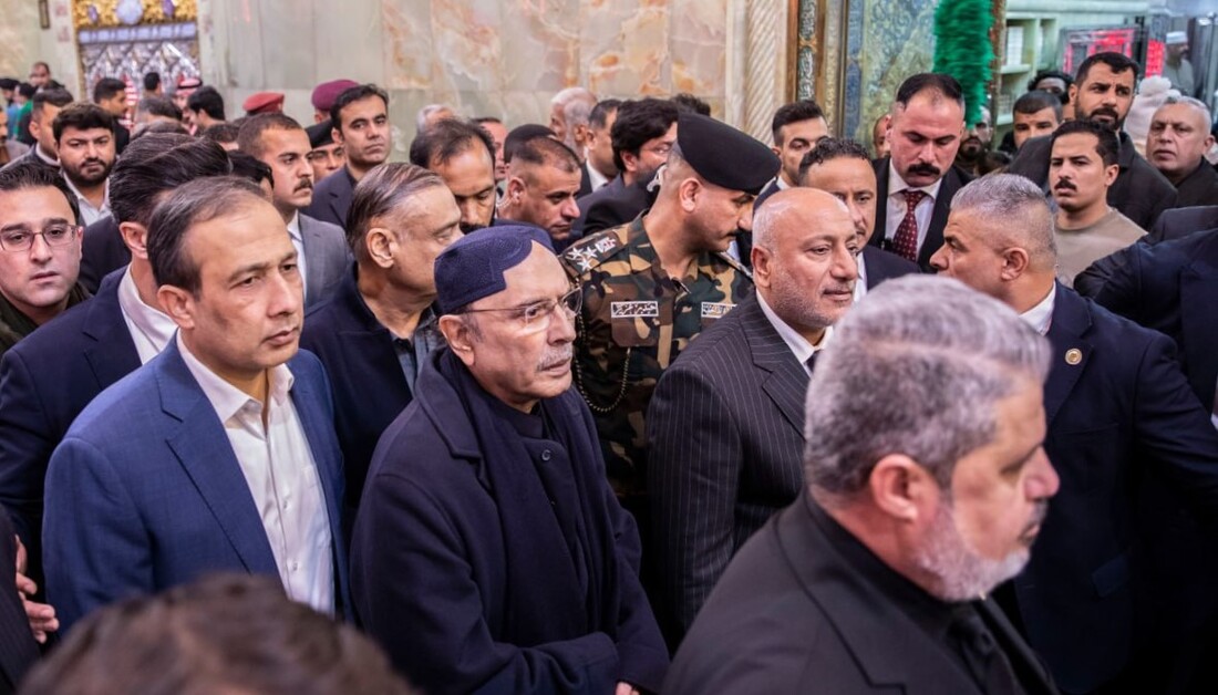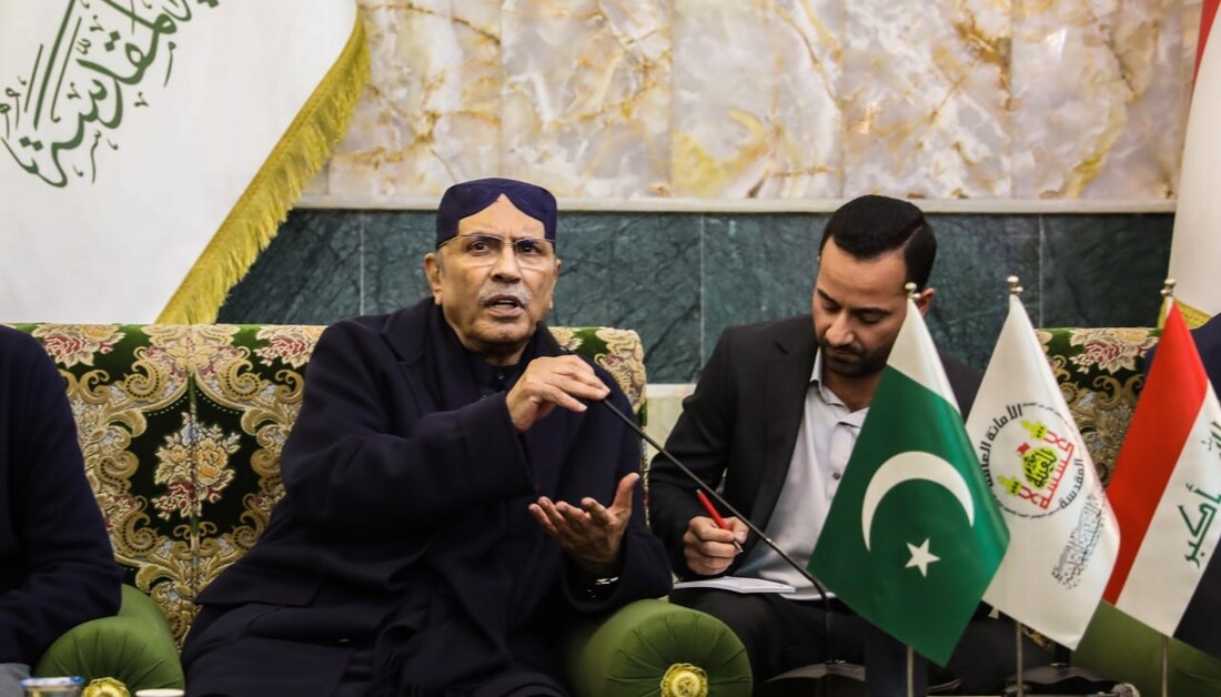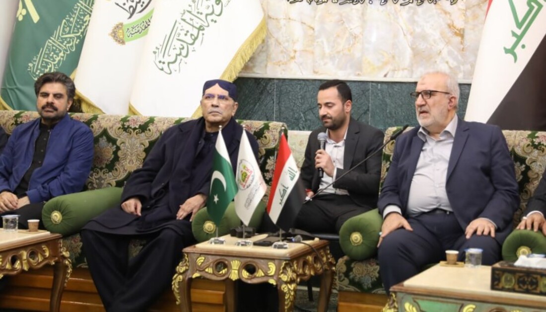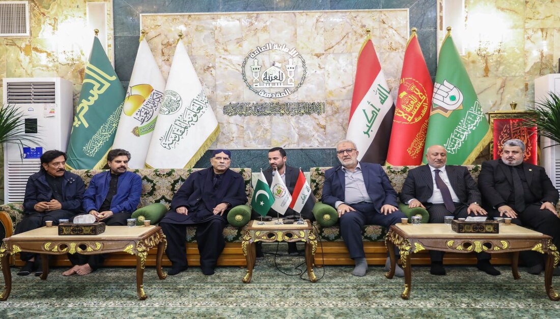 Hz. Hüseyin (a.s) Türbesi’ne ziyarette bulunan Pakistan Cumhurbaşkanı Asıf Ali Zerdari, Mukaddes Türbe’nin Genel Sekreteri Hasan Reşid el-Âbayecî’yi makamında ziyaret etti.
