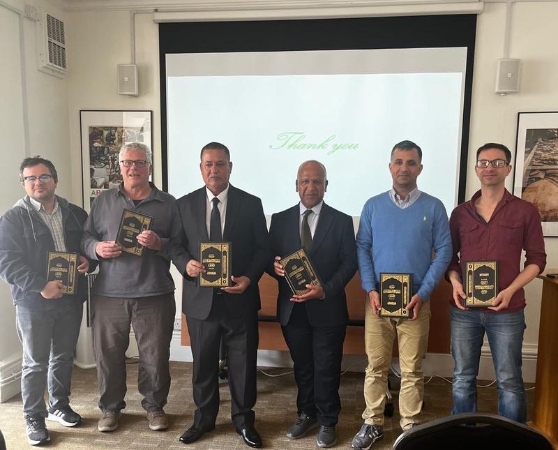 Profesör Zeynelabidin el-Cafer ve Dr. Galib el-Hureyfavi, hazırlanan dokuz ciltlik eserin bir kopyasını, üniversite kütüphanesine dahil edilmek üzere, EAMENA Projesi (Orta Doğu ve Kuzey Afrika'da Tehlike Altındaki Arkeoloji) ekibine takdim etti.