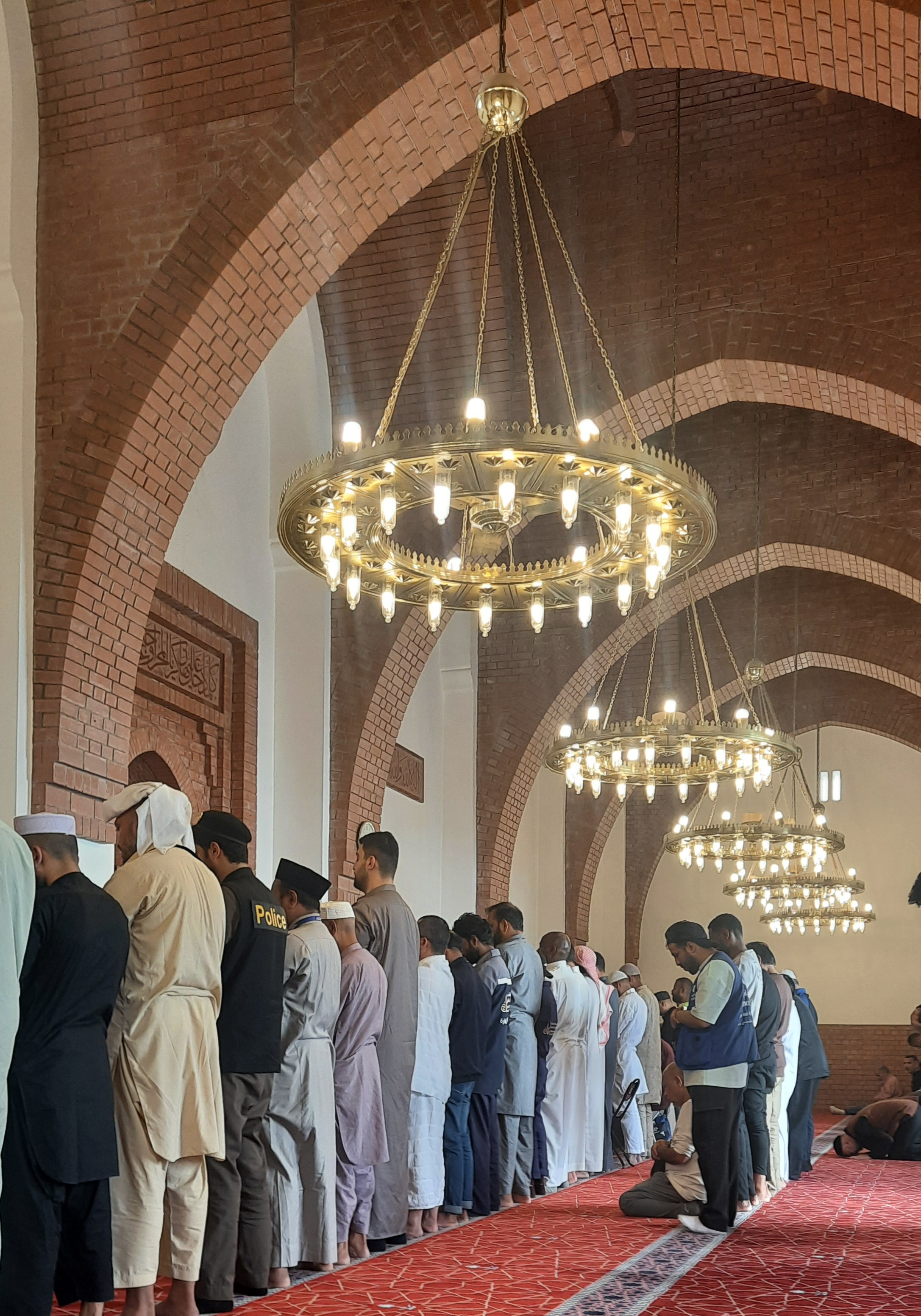 تاہم ایک عجیب بات یہ دیکھنے میں آئی کہ مسجد کے مرکزی دروازے کے سامنے صحن میں ایک کمرے کے برابر سائز کی سروس بلڈنگ تعمیر کی گئی ہے، جو بظاہر مسجد کے داخلی راستے کو چھپاتی ہے اور اسے ساتھ والی سڑک سے کسی حد تک الگ تھلگ کر دیتی ہے